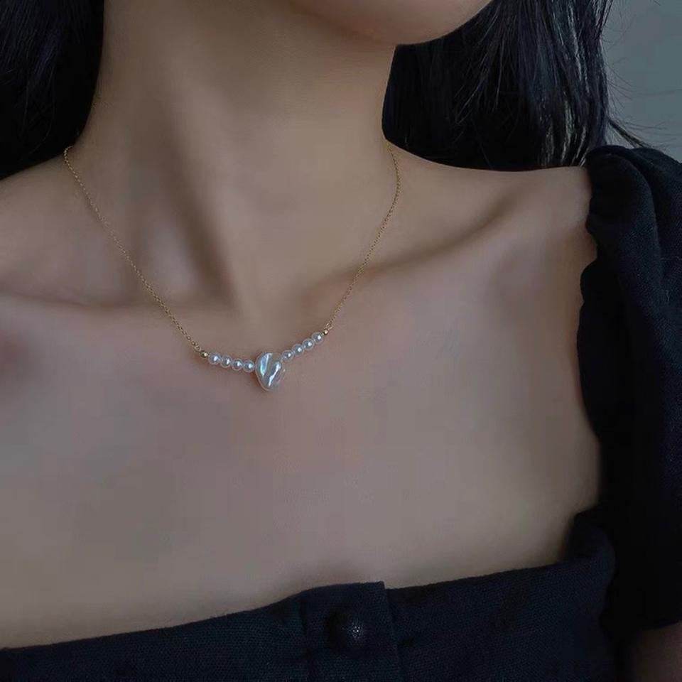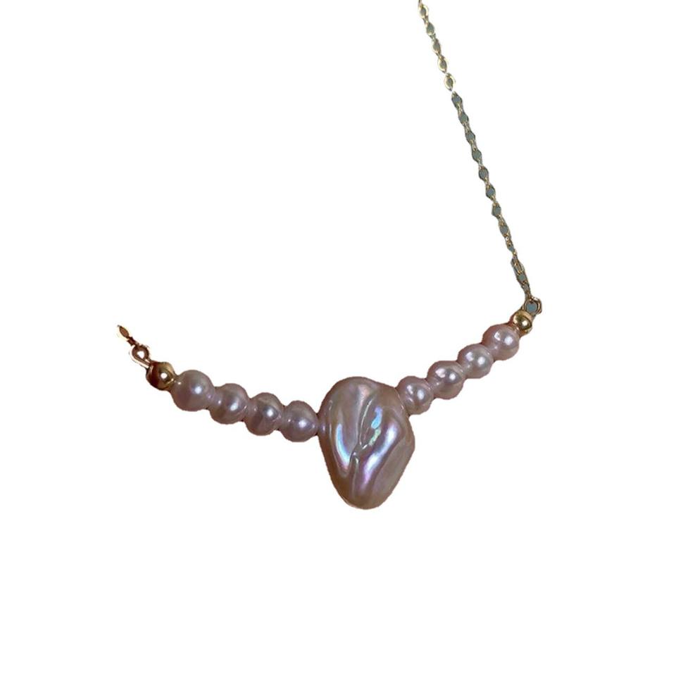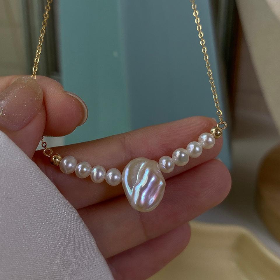 Women's Summer Baroque 14K Gold Wrapped Natural Freshwater Pearl Necklace Gentle Retro Style with Light Luxury Collarbone Chain