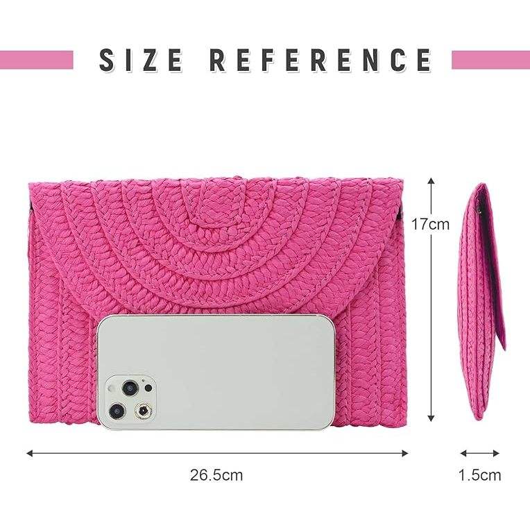 Women's Summer Beach Envelope Bag Straw Clutch Purse for Travel and Events