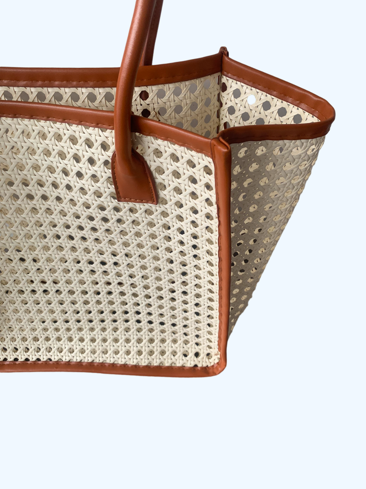 Women's Summer Beach Tote Bag High Quality Woven Cotton Shoulder Bag Logo Pattern Open Closure Two Handles/Straps Made Vietnam