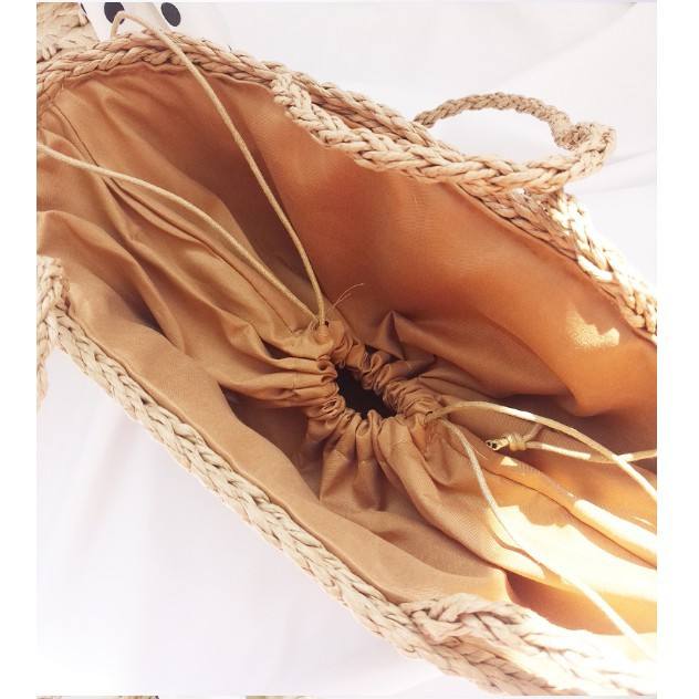 Women's Summer Beach Tote Handbag Embroidery and Beading Decorated Zipper Closure Straw Bag