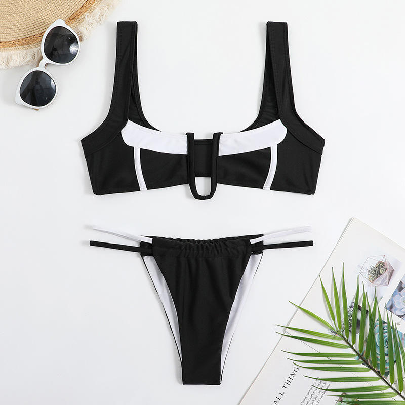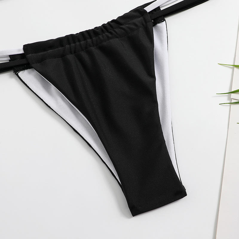 Women's Summer Beachwear 2-Piece Halter Neck Bikini Set Push-Up Padded V-String Solid Black White 100% Polyester Anti-Bacterial