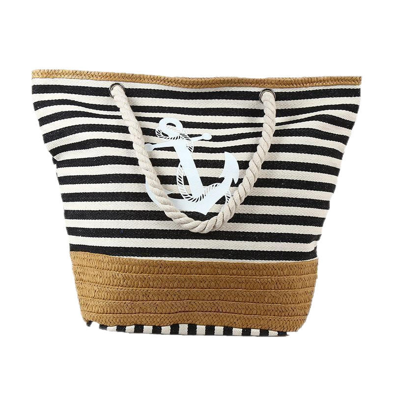 Women's Summer Casual Canvas Handheld Beach Bag Tassel Large Capacity Creative Striped Design Crochet Woven Bags