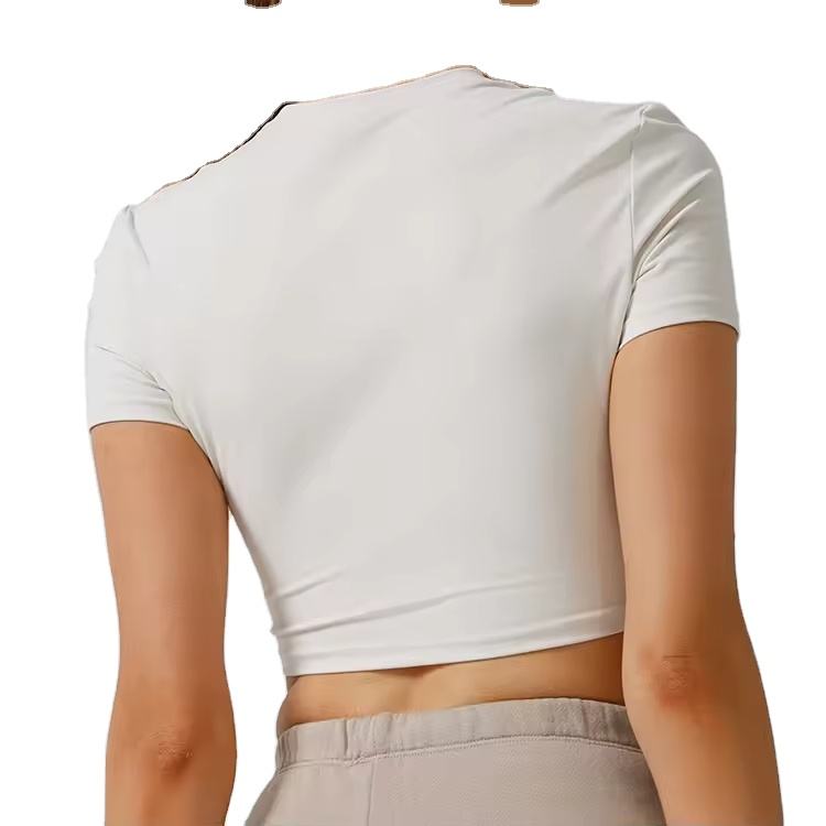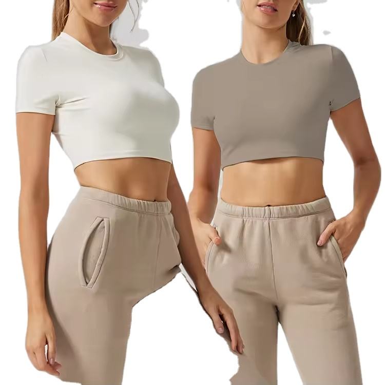 Women's Summer Casual Gym Crop Top 100% Cotton Breathable Short Sleeve O-Neck Digital Printing Solid Pattern Regular Fit