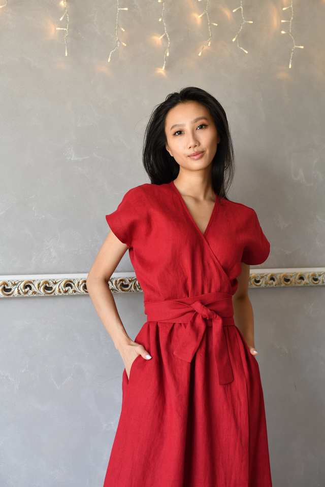 Product Name:Linen Wrap Dress