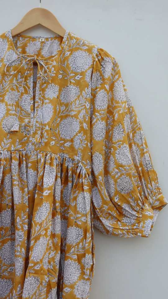 Women's Summer Casual Woven Eco-Friendly Bohemian Hand Block Printed Floral Maxi Dress