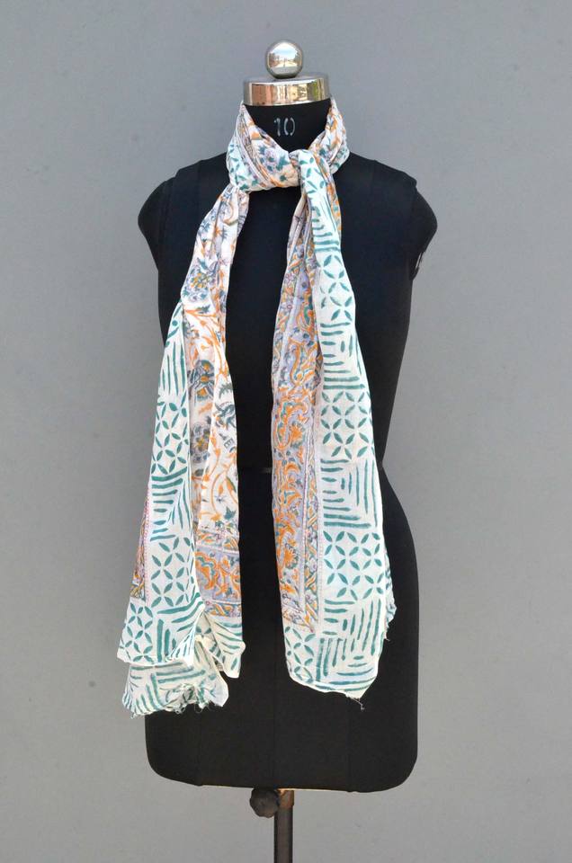 Women's Summer Cotton Pareo Neck Wrap Scarf Hand Block Print Floral Design Long Ladies Light Weight Perfect Gift Her Custom Logo