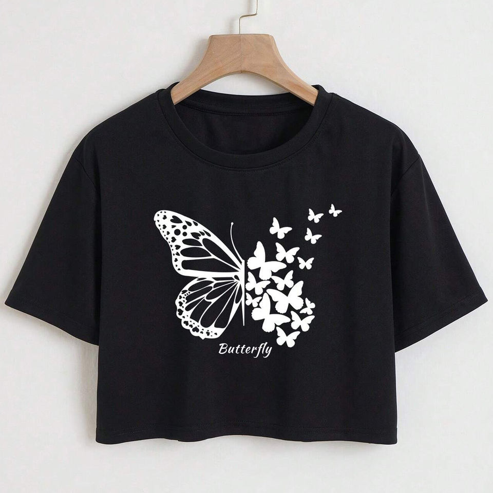 Women's Summer Crop Top T-Shirt Solid Short Sleeve O-Neck Sexy Jersey for Casual Wear Digital Printing