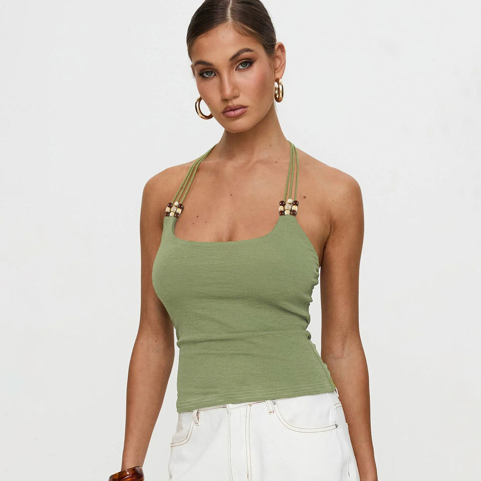Women's Summer Short Cut-Out Tank Top-Sexy V-Neck Sequin Lace-Up Backless Front Logo Top for Club & Date Night OEM