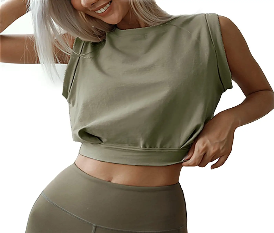 Women's Summer Fitness Crop Top Quick Dry Jersey Vest with Beading and Sequin Decoration for Yoga & Athletic Running Sports