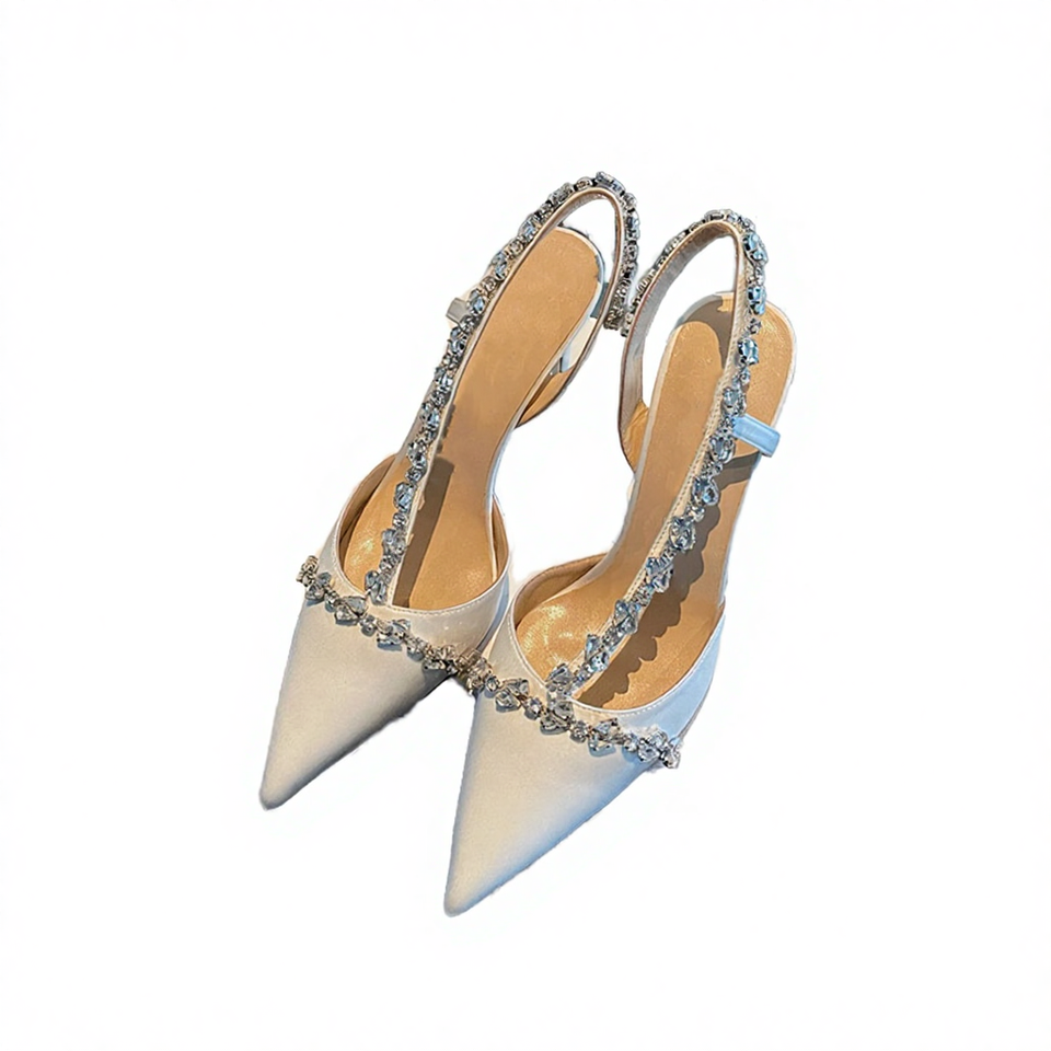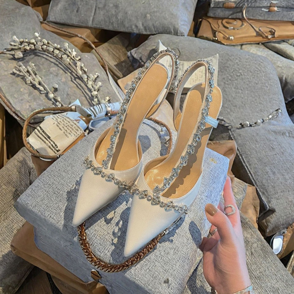 Women's Summer Outdoor Open Slip-on Fashion Wedding Party Strap Bridal Bride Heeled Pointed Toe High Thin Heels Shoes