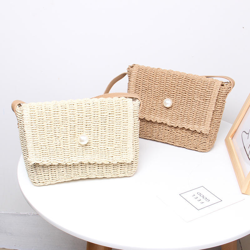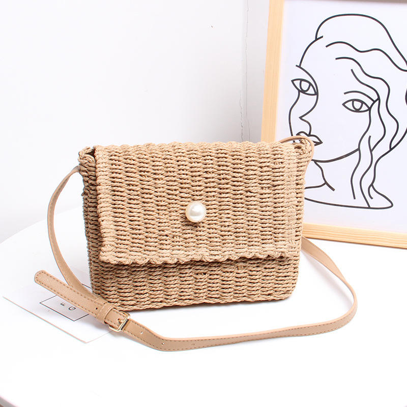 Women's Summer Straw Tote Handbag Wholesale Vintage Style Beach Crossbody Bag Lock Closure Portable Embroidered Dresses Candy