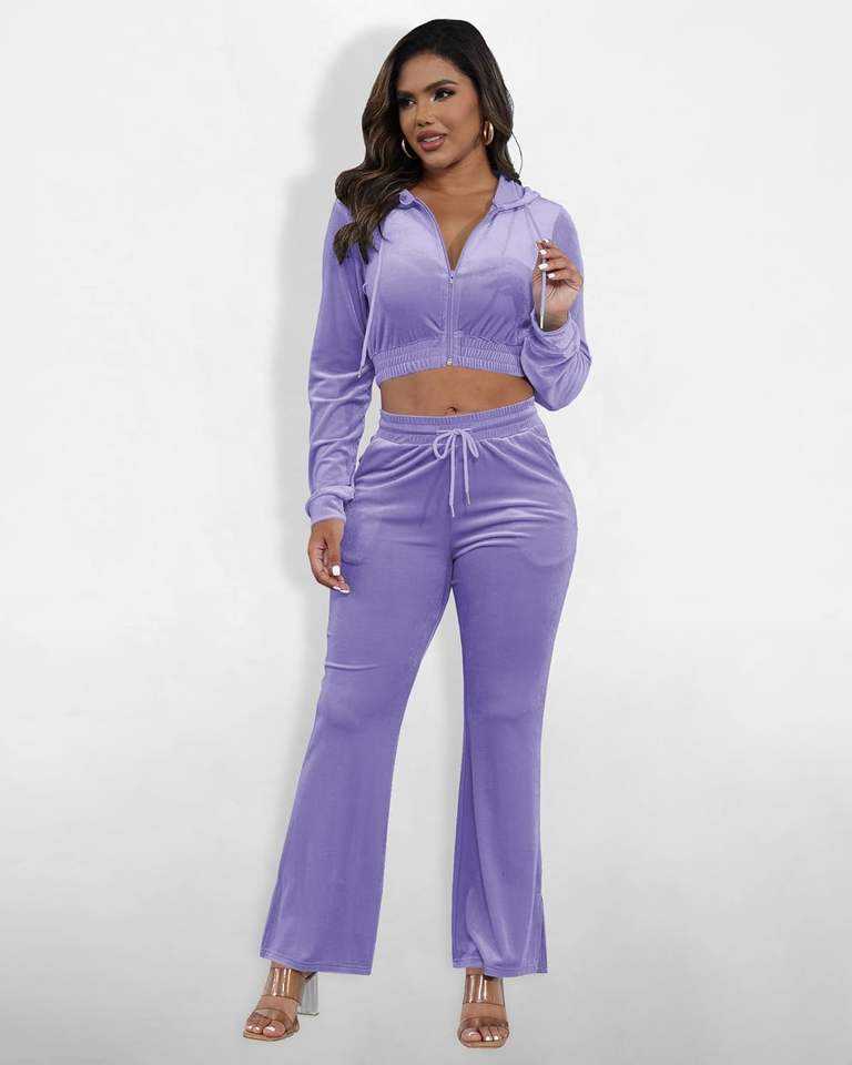 Women's Sweatsuit Set Velvet 2 Piece Tracksuit Outfit Velour Jogging Long Sleeve Cropped Hoodie and Oversize Women Tracksuits