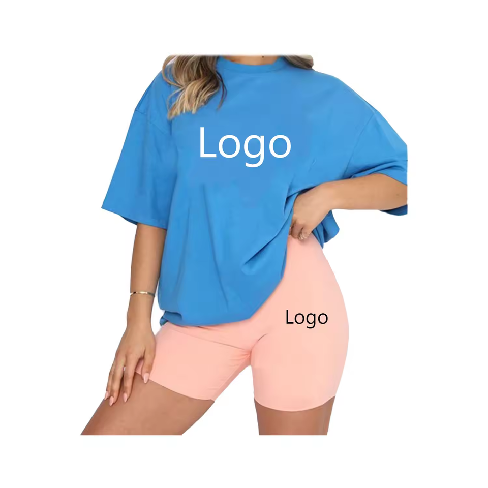 2025 Wholesale Cotton Tshirt Oversize Women Fashion New Tops Casual T Shirt and Shorts Set Oversized Long Printed T-shirts