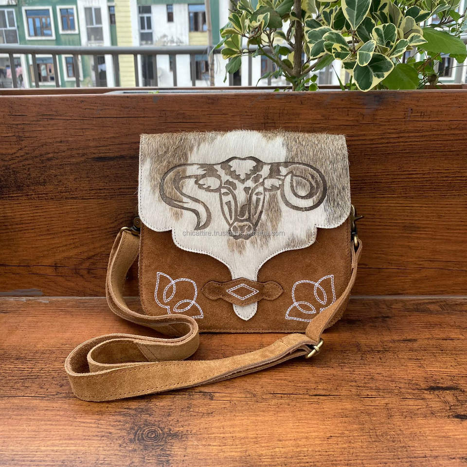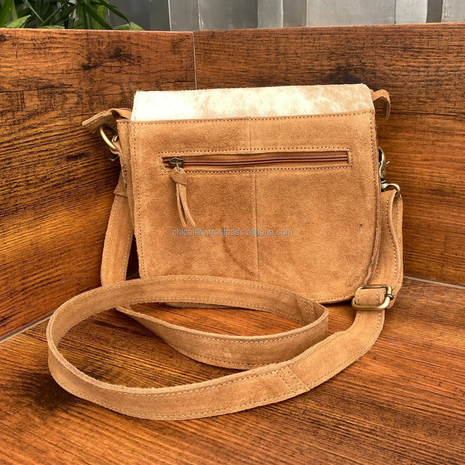 Women's Tan Genuine Suede Leather Boot Stitch Crossbody Bags for Women Western Hair on Cowhide Laser Embossed Designer Handbags