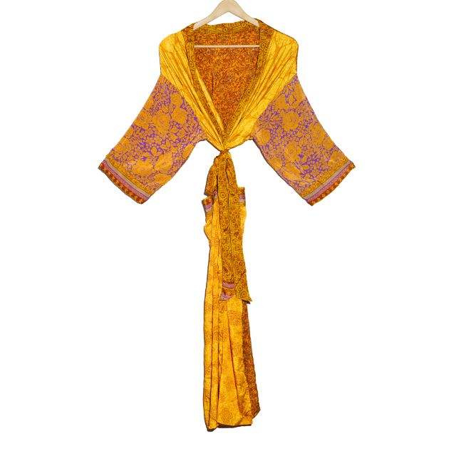Women's Thermal Floral Boho Silk Kimono Wrap Dress Spring Maxi Gown Robe for Summer