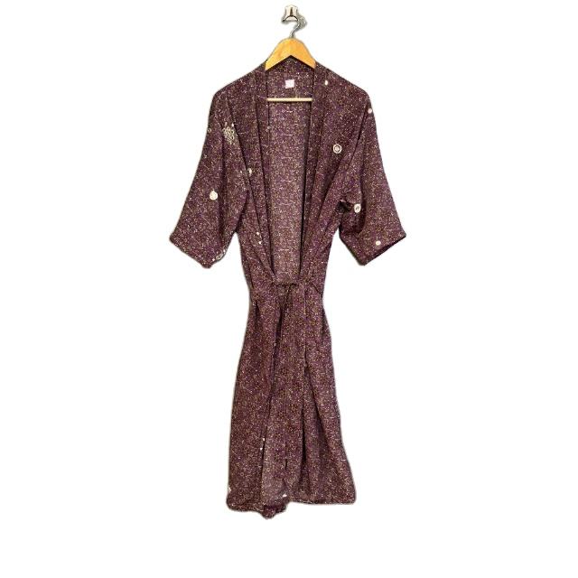 Women's Thermal Floral Print Recycled Silk Kimono Boho Beach Cover-Up Sleepwear for Home Sari-Style Bath Robe for Spring Summer