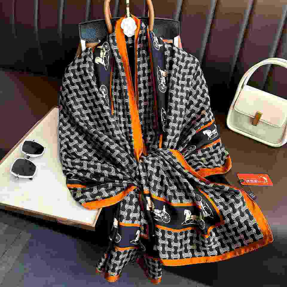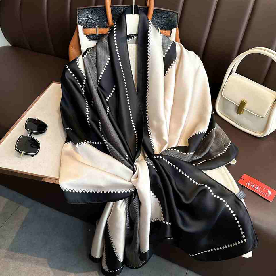 Women's Thin Spring and Autumn Letters All-Match Artificial Silk Advanced Talma Dual-Use Winter Scarf