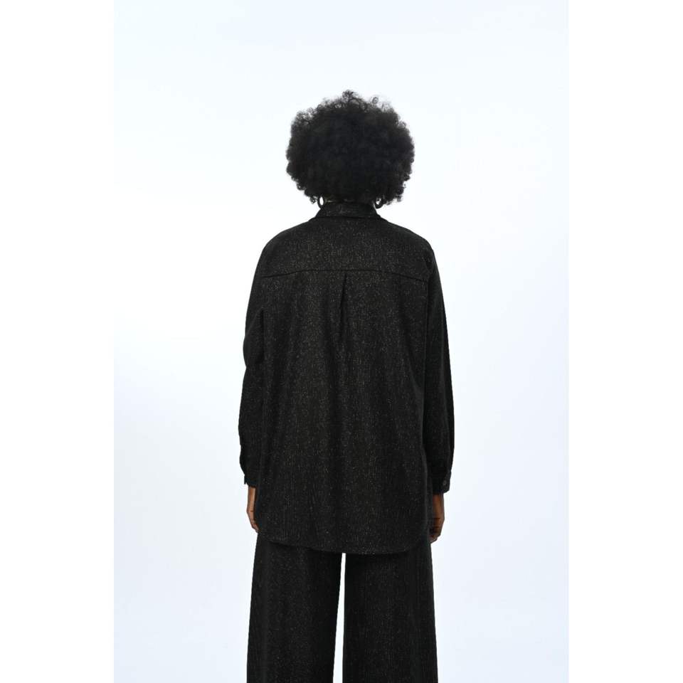 Women's Thin Striped Glitter Oversize Blouse Plus Size Glitter Shirt