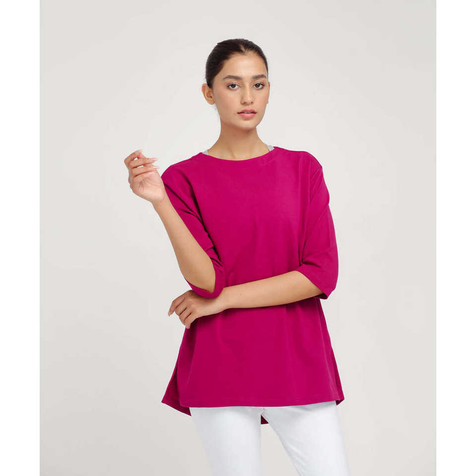 Product Features:Back pleat,side slits,crew neck,three quarter sleeves