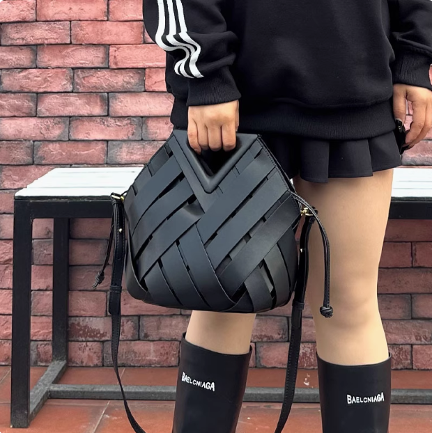 Women's Three-Sided Magnetic Snap Leather Woven Flap Bag New Style Vegetable Basket Inspired Crossbody Shoulder Bag