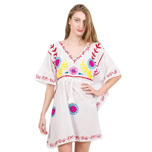 Women's Top Cotton Kaftan New Design Casual Dress for Summer Bohemian Night Wear with Natural Waistline and Sash Decoration