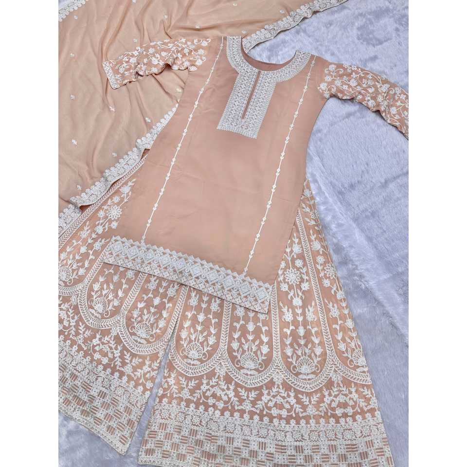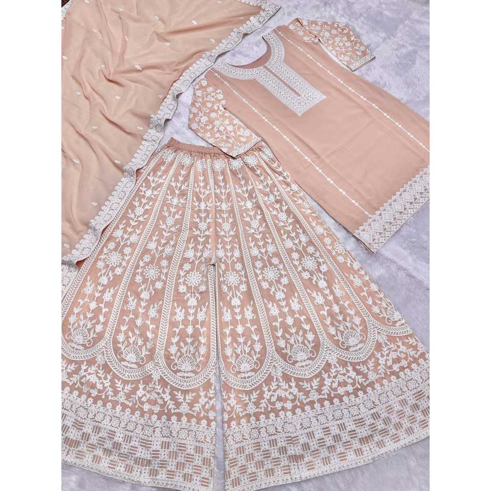 Women's Top-Plazzo Set with Embroidery Chain Stitched Work and Dupatta Fashionable Top and Dupatta with Elegant Embroidery Work