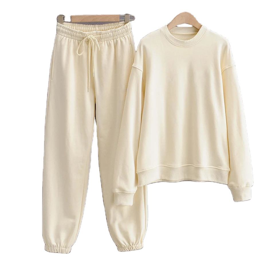 Women's Tracksuit Set 100% Cotton Breathable Casual Crop Hoodie and Sweatpants Lightweight MOQ 30 Private Label