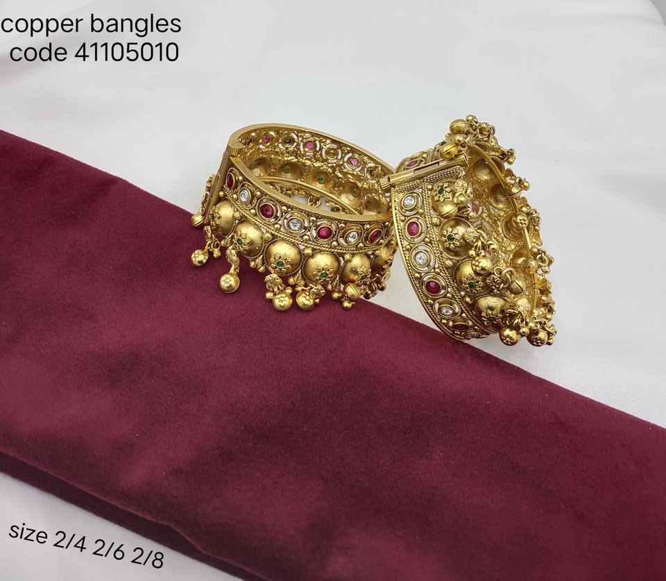 Women's Traditional Gold-Toned Engraved Copper Bangles Set for Wedding Party Gift Occasions