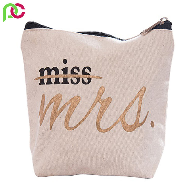 Women's Travel for Toiletry Makeup Bag Eco-Friendly Cotton Canvas Custom Logo Jute Gold Zipper Fashionable Wholesale Plain White