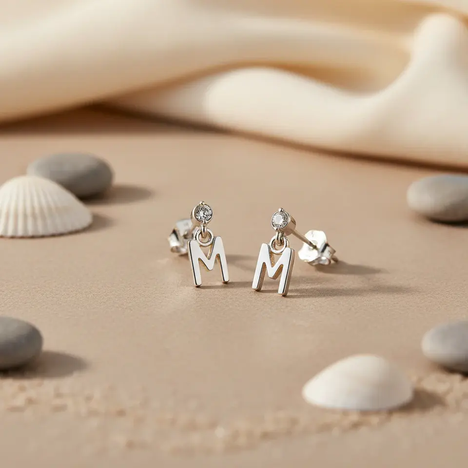 Women's Trendy 18K Gold Plated 925 Silver 'M' Stud Earrings with Diamond and Zircon Geometric Star Design for Engagement