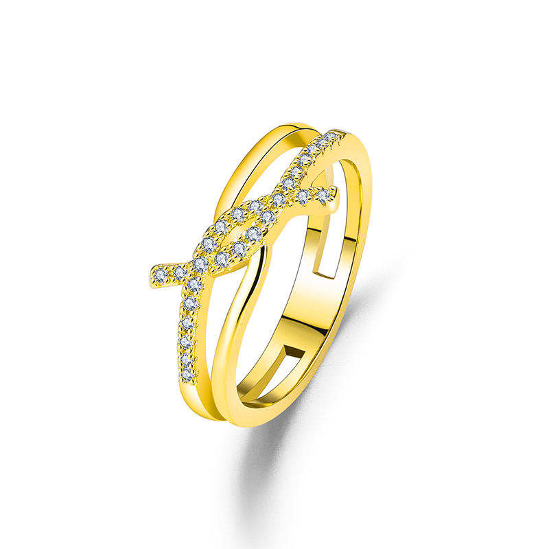 Women's Trendy 18K Gold Plated Copper Fashion Rings Personalized Knotted Zirconia