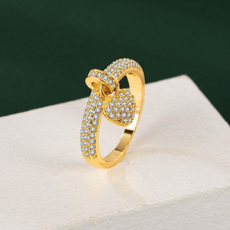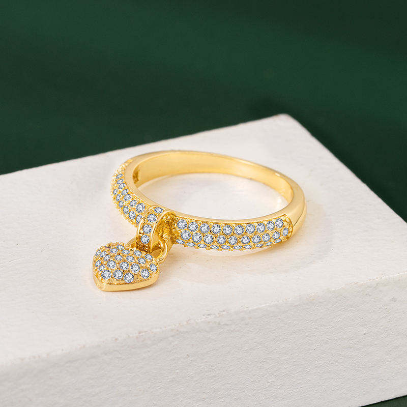 Women's Trendy 18K Gold-Plated Heart Shaped Ring with Cubic Zirconia and Copper Jewelry