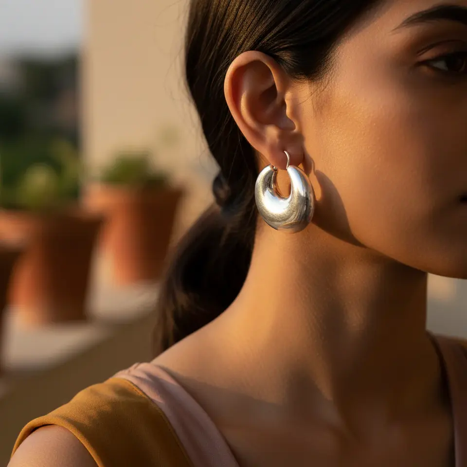 Women's Trendy 925 Silver Chunky Hoop Earrings Rhodium Gold Plated Geometric Pattern Platinum Rose Gold for Daily Wear Gift