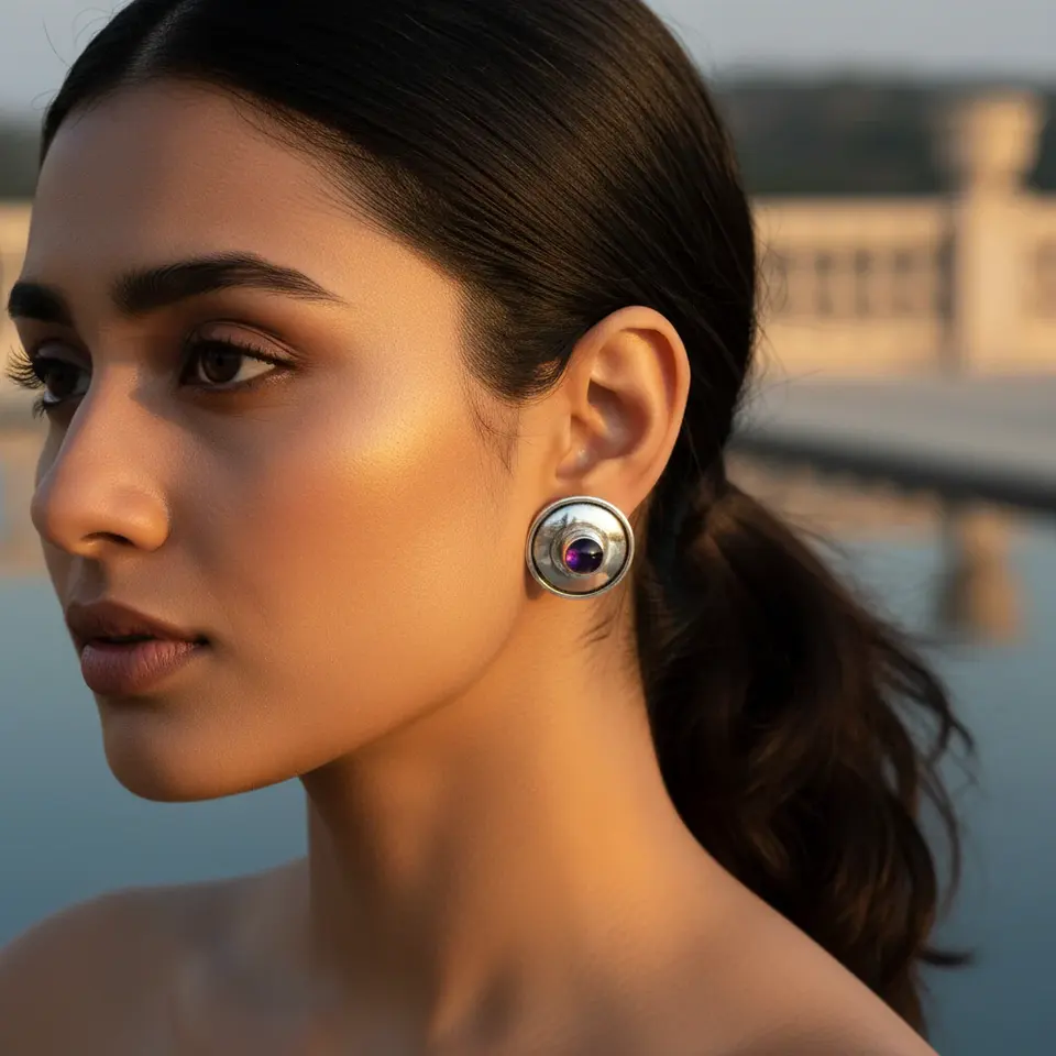 Women's Trendy 925 Silver Stud Earrings with Blue Gemstone Gold Plated and Geometric Pattern for Wedding or Engagement