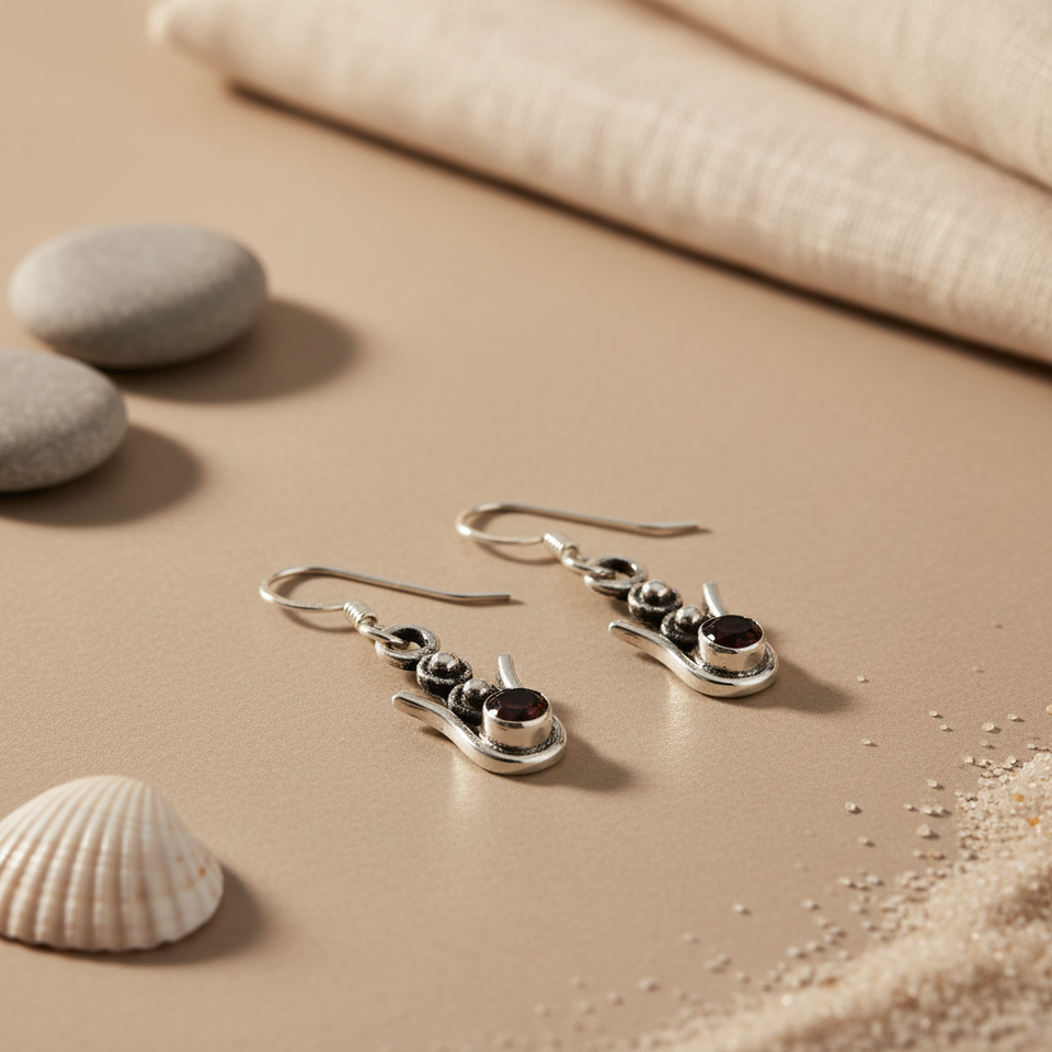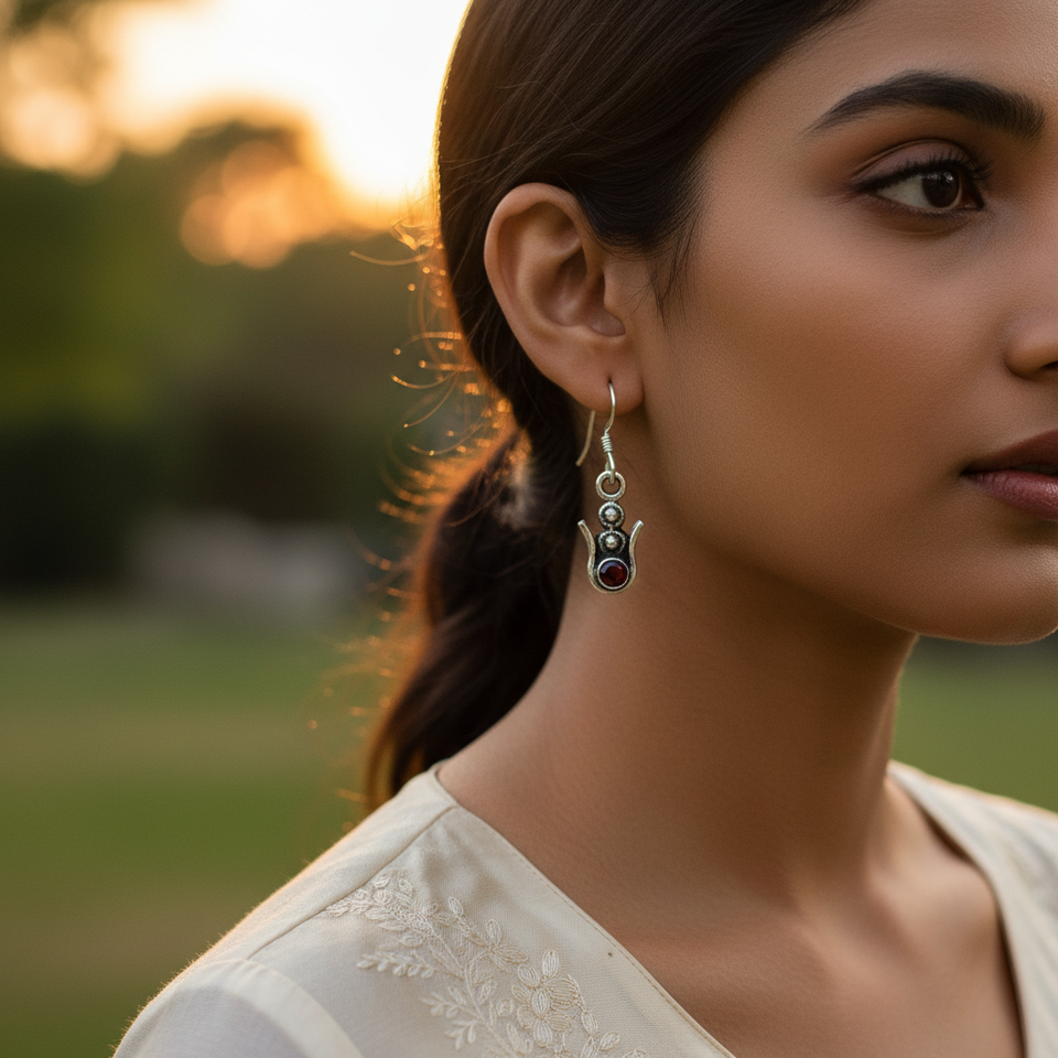 Women's Trendy 925 Sterling Silver Rose Gold Stud Earrings with Garnet Topaz Diamond Gold Plated Flower Pattern Gift Jewelry