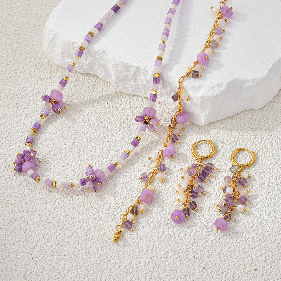 Women's Trendy Amethyst and Pearl Beaded Necklace/Earrings/Bracelet Set for Casual and Date Wear
