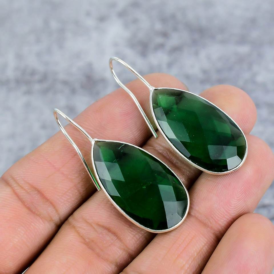 Women's Trendy Chrome Diopside 925 Sterling Silver Teardrop Shape Statement Earrings Party Wedding Gift Idea