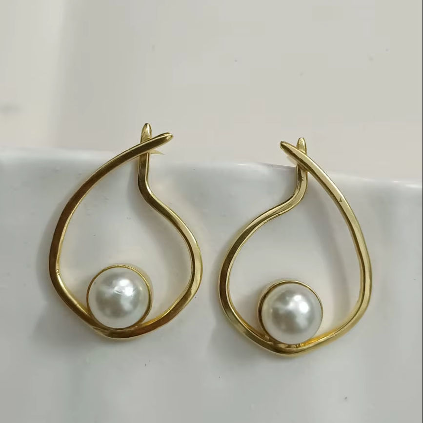 Women's Trendy Ethnic Light-Weight Brass Earrings Monalisa Stone Golden Geometrical Stud Silver Finish Fashion Jewellery Bulk