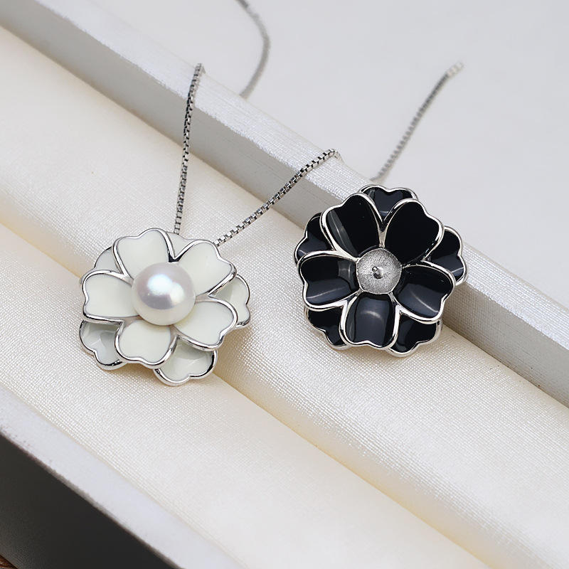 Women's Trendy Fashion Jewelry Set S925 Silver Earrings Epoxy Pendant Ring 9-11 Pearl Hollow Flower Shape 1281 Base DIY
