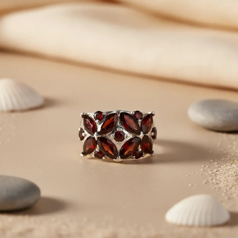 Women's Trendy Garnet Gemstone Ring Adjustable Sterling Silver Rose Gold Plating 18K Inlay 100% Natural Gemstones Perfect Gift