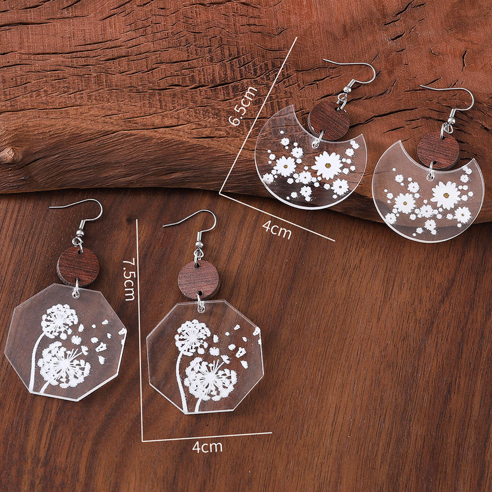 Women's Trendy Geometric Crescent Shape Polygonal Mosaic Pendant Earrings Fashionable Acrylic Flowers with Alloy Base