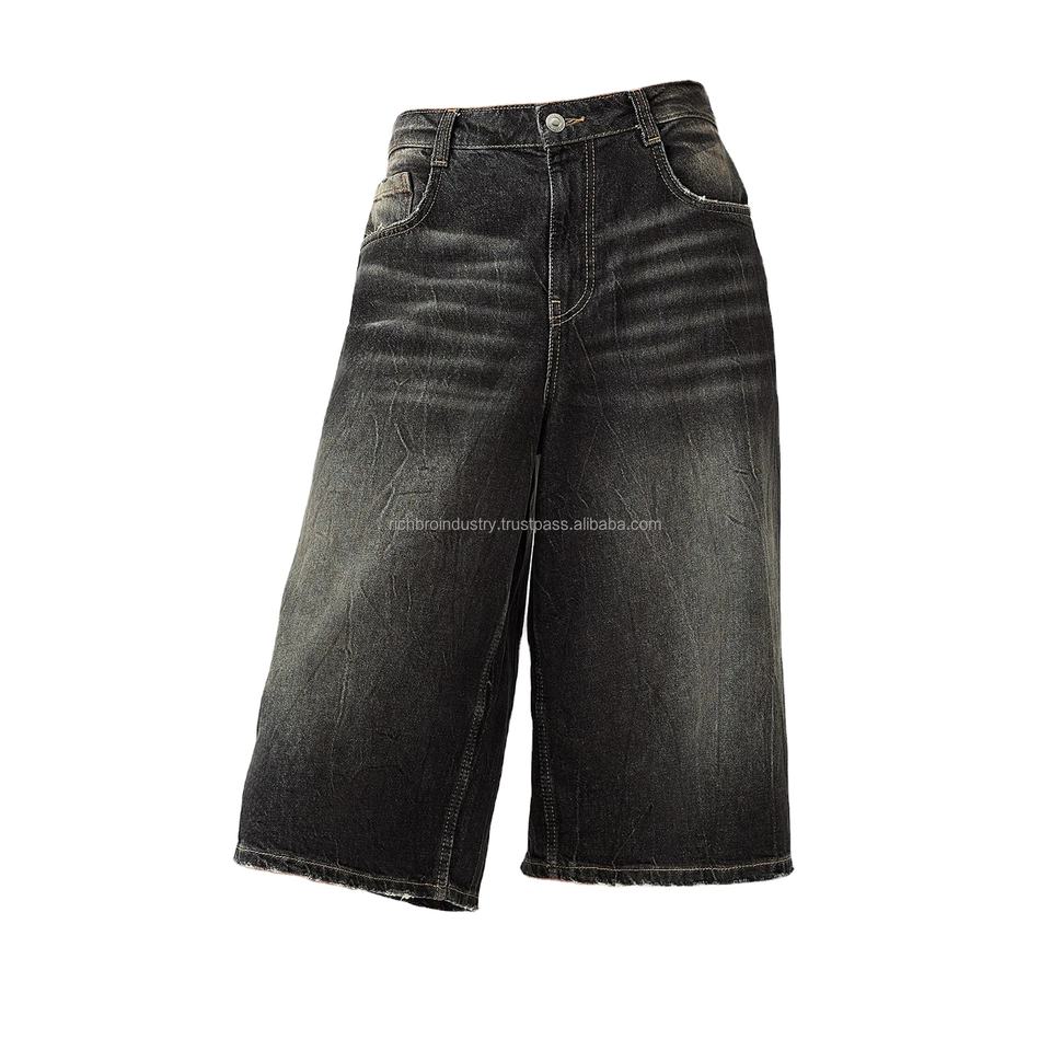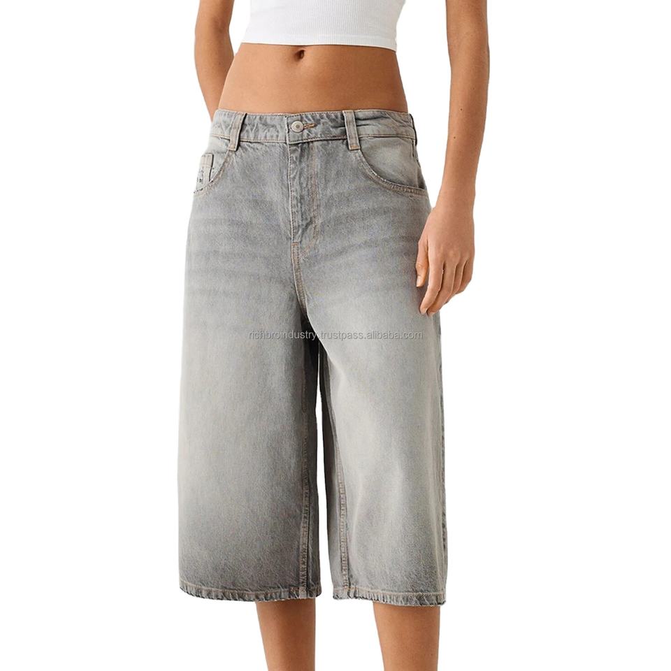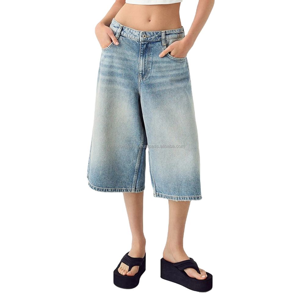 Women's Trendy Summer Knee Length Denim Shorts High Waist Skinny Stretchy Bermuda Jeans Cargo Y2K Gothic Print Streetwear