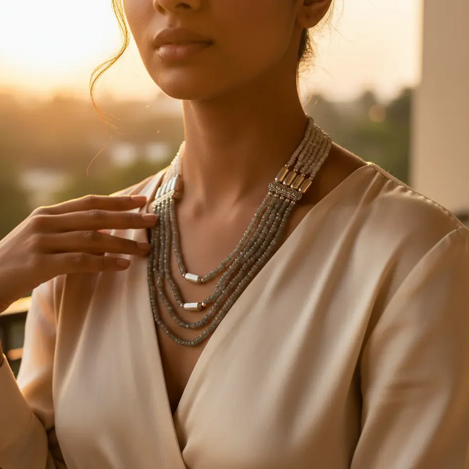 Women's Trendy Labradorite Beaded Necklace Agate Turquoise Gemstone Jewelry with Jade Freshwater Pearl Religious Style Gift