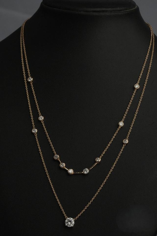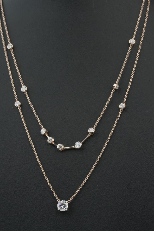 Women's Trendy Round Cut Synthetic Lab Grown Diamond Necklace 18/14 Karat Rose Gold/Silver/Gold Plated IGI Certified