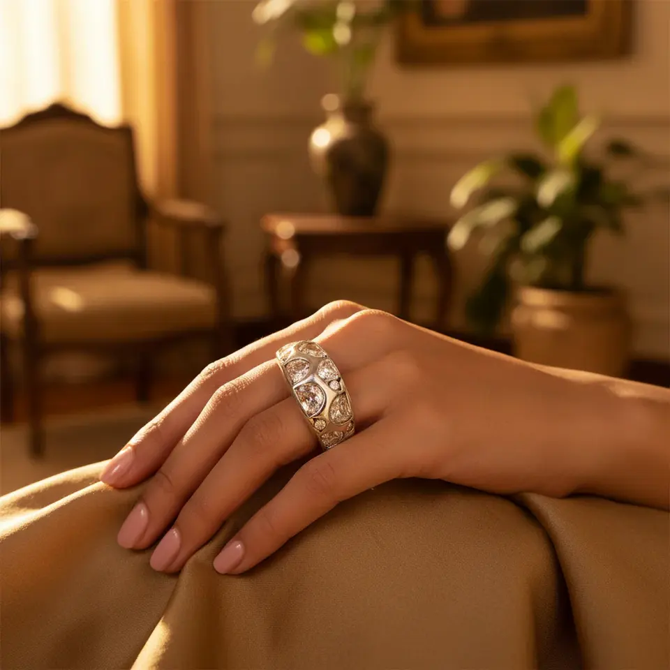 Women's Trendy Silver Cubic Zirconia Ring Rose Gold & Gold Plated Inlay Fashion Jewelry with Stylish Number Shape