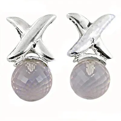 Women's Trendy Silver X Stud Earrings with Faceted Diamond Pearl Gold Plated Moon Heart Shape Religious Cute Styles for Parties