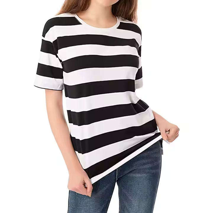 Women's Trendy Streetwear Slim T Shirts Mandarin Collar Embroidery Breathable Soft Fabric Private Custom Logo Wholesale Everyday