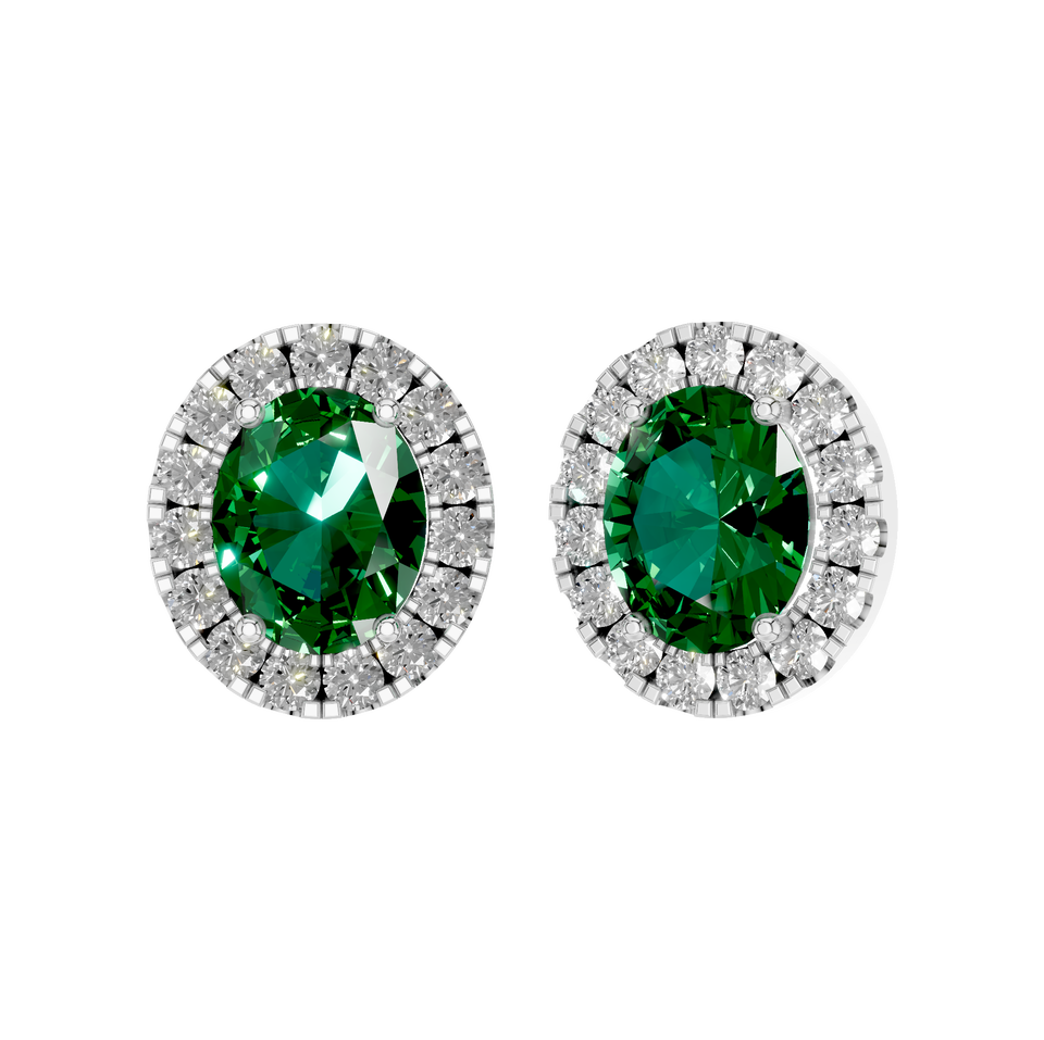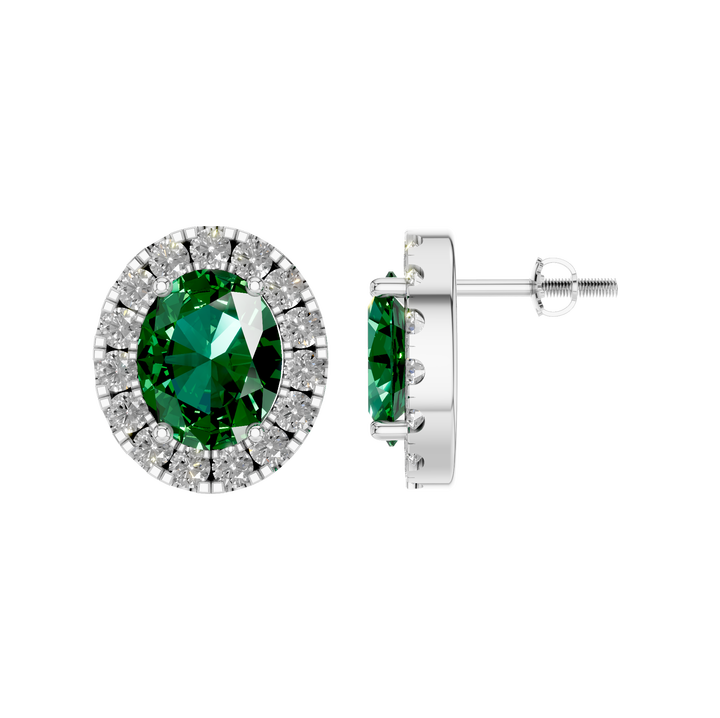 Style:Oval Shaped Natural Emerald Stud Earring with Natural Diamond Halo