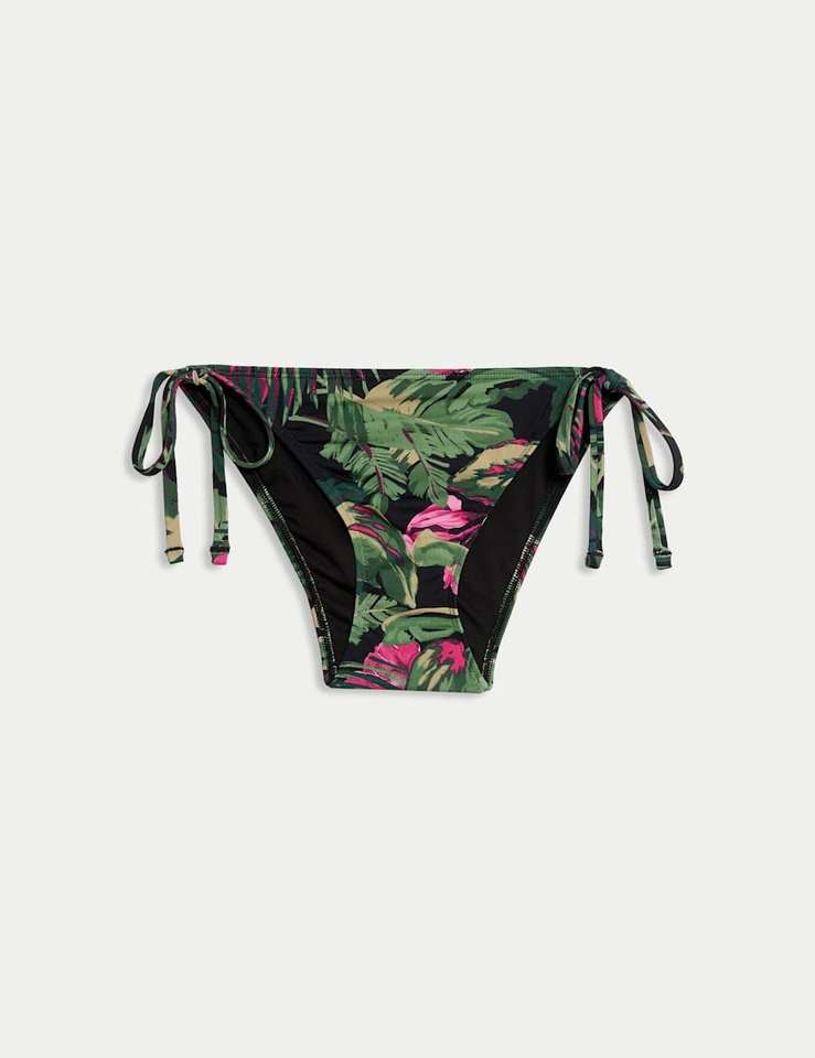 Women's Triangle Bikini Set with Crochet Trim Tropical Leaf Print Halter Top Tie Side Bottom Summer Beachwear OEM Logo Front