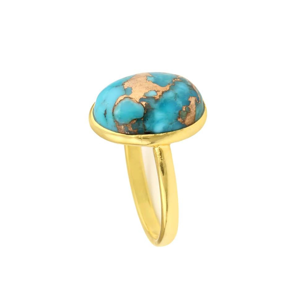 Product name:Natural Blue Copper Turquoise Sterling Silver Gold Plated Bezel Ring